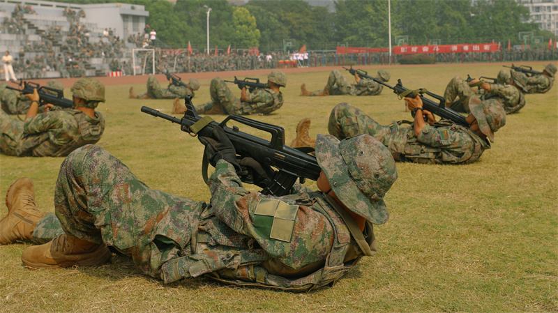 军训团各营各方阵进行分列式表演。军训团表演方阵进行格斗术表演。73021部队全体教官进行战术表演。