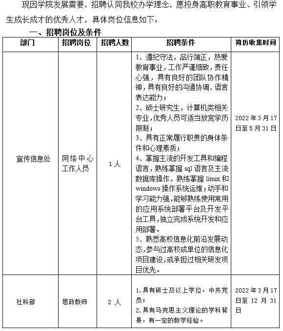 诚聘网络中心工作人员及思政教师