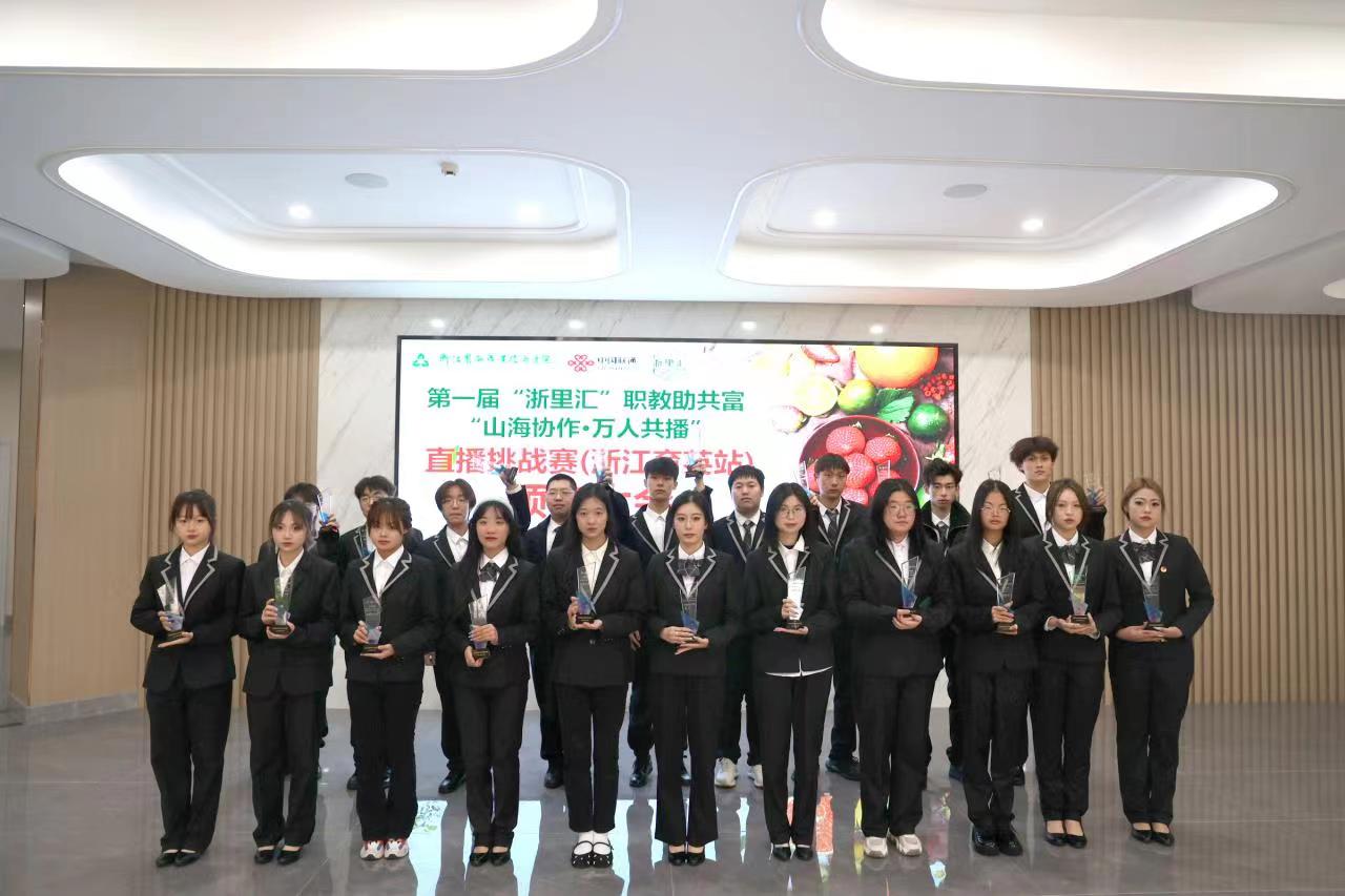 本次共有71个参赛小组、346名学生参与比赛,涉及电子商务、直播电商、跨境电商、国际商务、市场营销、人物形象设计等9个专业;经过缜密的数据采集和专家评分,最终评选出一等奖6项,二等奖12项,三等奖24项,另有20名参赛选手被中国联通直播中心授予“未来星”主播和运营官,3名参赛选手被浙江省学徒制中心授予“优秀创作者”称号。