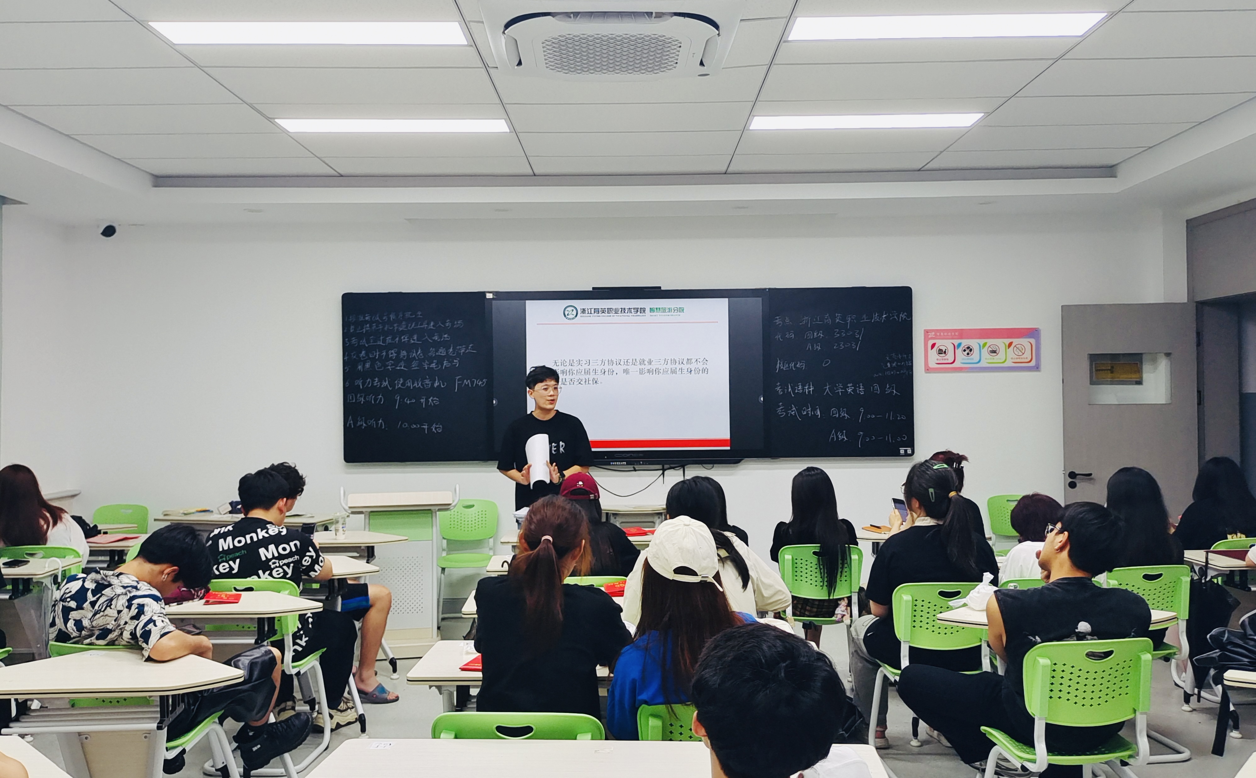 为加强学生对顶岗实习的认识和了解,引导学生做好顶岗实习前的各项准备工作,切实推动2021级旅游管理专业、会展专业学生实习工作有序开展,6月24日晚,各专业在教室召开顶岗实习动员会。实习动员会由辅导员陈栋主持。