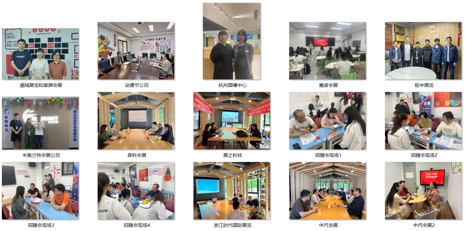 智慧旅游学院院长黄华与会展专业负责王贇老师在本学年走访了杭州中国国际动漫节会展有限公司、浙江时代国际展览服务有限公司、浙江米奥兰特商务会展股份有限公司、杭州鑫桥会展有限公司、杭州森科会展有限公司、浙江中汽会展有限公司、浙江嘉诺会展有限公司、杭州国际博览中心、杭州白马湖国际会展中心、杭州钜中展览有限公司、浙江潮域展览有限公司、杭州雄狮会展服务有限公司、杭州展之科技有限公司等十数家知名会展企业。