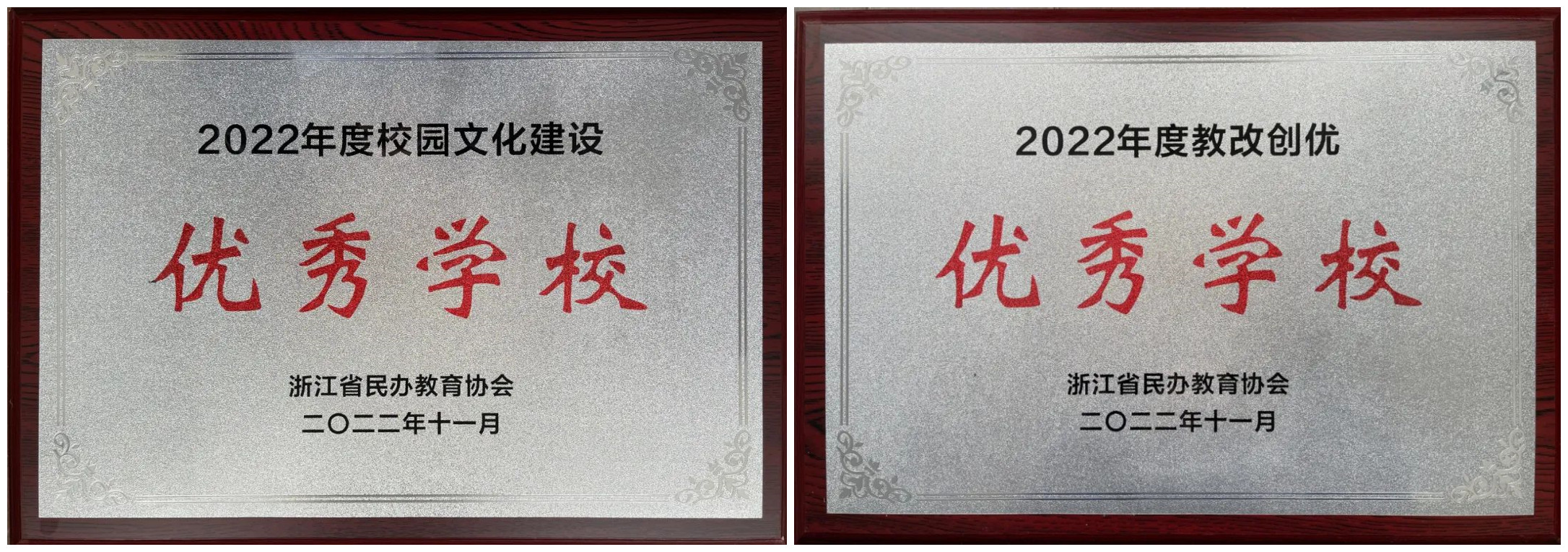 学校被浙江省民办教育协会评为“校园文化建设优秀学校”、“教改创优优秀学校”。