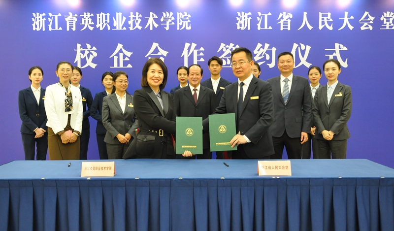 学校与省人民大会堂、银泰商业集团、深信服科技公司、中国国旅浙江分公司、杭州长乔旅游投资集团、高度国际等多家企业签订战略合作协议,深化产教融合,推动校企协同育人纵深发展。