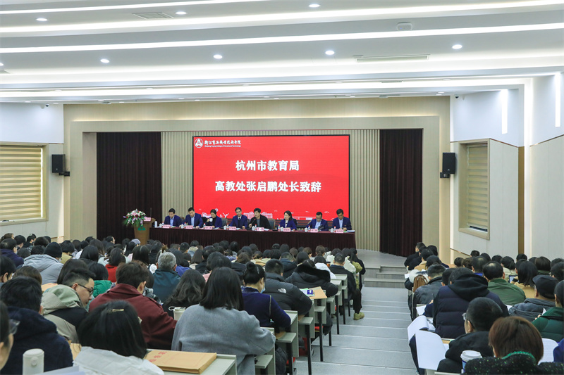 2月16-17日,学校第十次教学工作会议隆重举行。校长丁金昌,常务副校长黄爱平,党委书记、副校长谢鑫,副校长王敏、徐晓斌、崔海辉,教学顾问黄春麟出席,全体教职工参加会议。杭州市教育局高教处处长张启鹏应邀到会讲话。黄爱平主持会议。