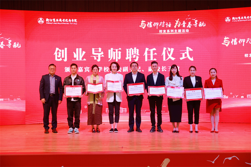 谢鑫、王敏分别为到场的优秀校友颁发校友创业导师和校友就业导师聘书。