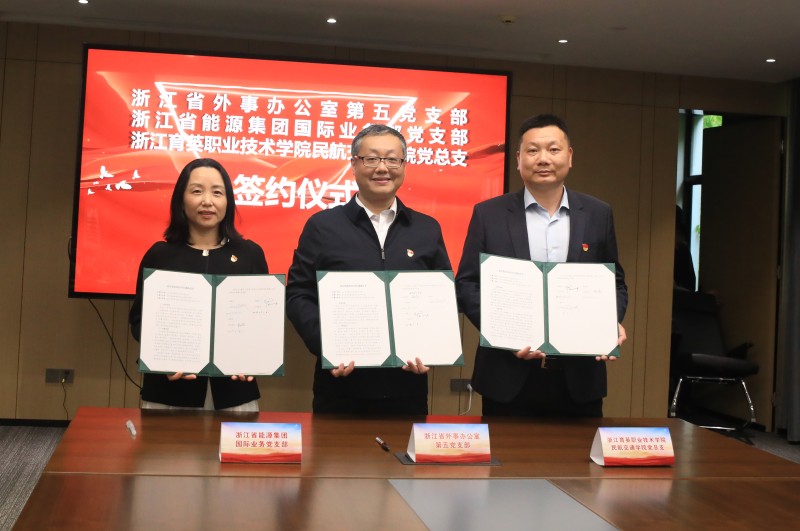 省外办党组成员、副主任王红威,省外办二级巡视员施华忠,省外办第五党支部书记、亚非处处长翟帅,省外办第五党支部委员、亚非处二级调研员张月祥,浙能集团国际事务部党支部书记、部长杨暘,浙能集团国际事务部副主任乐亚表,育英学院党委书记、副校长谢鑫,副校长、民航交通学院党总支书记、院长徐晓斌,民航交通学院党总支副书记、副院长赵瑞晔,副院长韩丽,及共建三方党员代表,育英民航交通学院教师代表、民航亚运礼仪志愿者及指导老师参加活动。