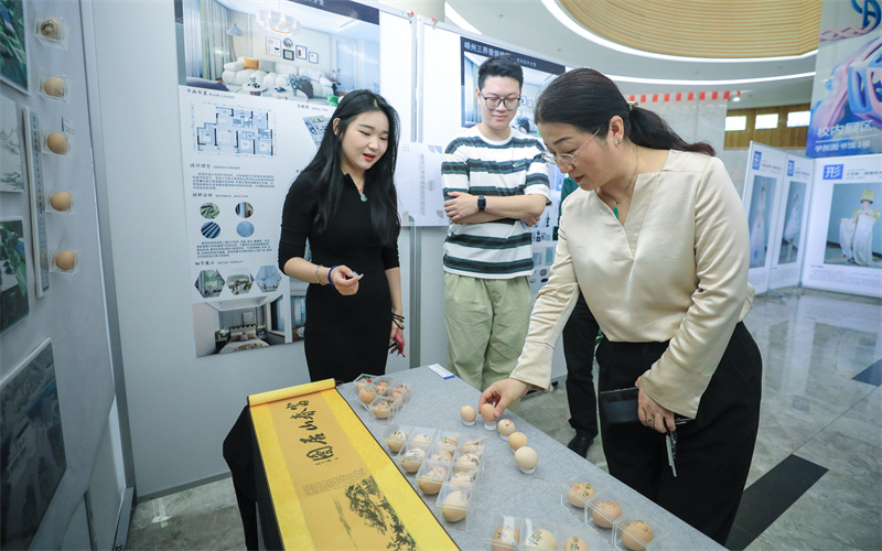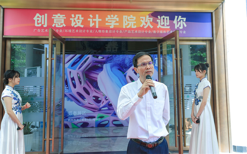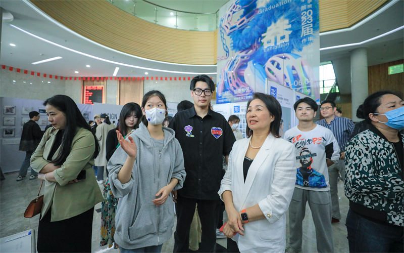 创意设计学院院长宋连凯介绍,今年的毕业设计展主题为“融.器”,融乃融合之意,即设计融文化、美学、数字科技等为一体,更凸显设计领域的交叉性与复合性。器乃成材之器,所谓玉不琢不成器。一器成、融万象。“融.器”即是希望同学们对设计多一些探索,也是学院对同学们成大器之材的期许。希望同学们始终保持学习之心、尤其及时学习先进的技术与方法,思考面对AI技术,设计师如何科学应用、科学创新。始终保持创新意识,创新是设计职业的灵魂,要求我们必须要有不断鲜活的创意和稳定的执行力,敢于创新是设计师的必备素养。始终保持正念设计,即设计的价值要有益于社会、有益他性。