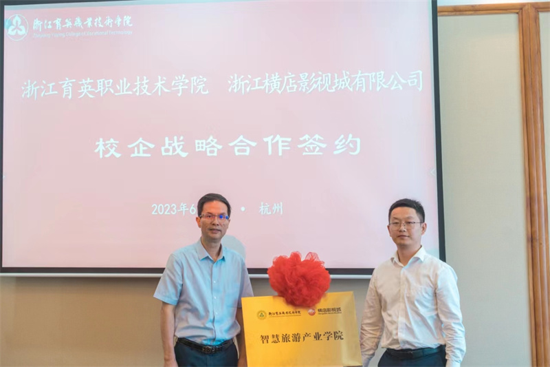 陈冠雄对双方共建成立智慧旅游产业学院表示祝贺。他介绍了横店集团的基本情况和企业理念。横店集团目前有四大业务板块,拥有6家上市公司,60余家子公司,对专业人才的需求量非常大。他说,初次来到育英学院,学校给他留下了深刻印象,真切地感受到育英学子良好的精神风貌,对育英的培养理念和建设思路深表赞同;学校打造的专业群与横店集团的影视文旅、现代服务等业务板块非常对口。他表示,今后将以这次战略合作为契机,双方共同努力,在人才培养、课程建设、资源共建、实习实训、社会服务等方面深度融合,合力培育数字文旅人才;未来可以实现学校与横店集团各个层面更好、更长远的合作。