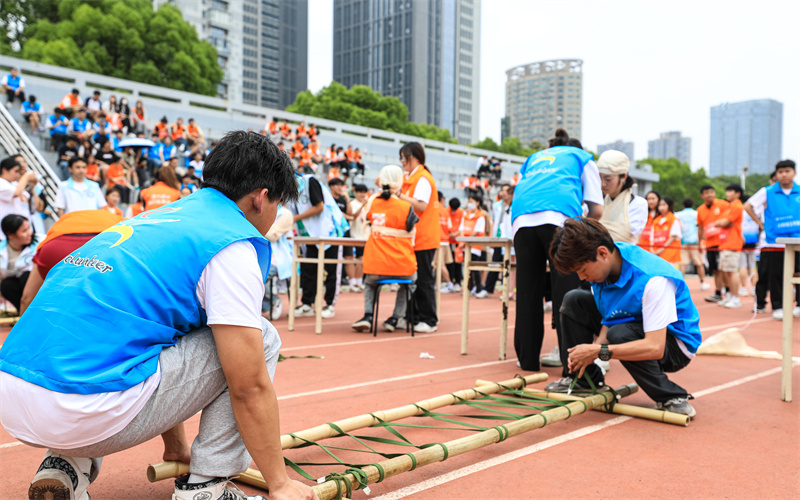 卫生健康知识与救护技能大赛包括卫生健康知识网络竞赛和救护技能决赛两部分。之前举行的卫生健康知识网络竞赛,覆盖了2022级全体班级,共计3395位学生完成了有效答卷。总决赛突出实际操作能力,操作内容不仅包括头部包扎、单肩包扎、前臂骨折固定、担架制作及搬运伤员、徒手心肺复苏术,还有速度要求,使竞赛更加贴近救护现场的实际和紧迫性。本次活动还增加了应急救护队现场演示。