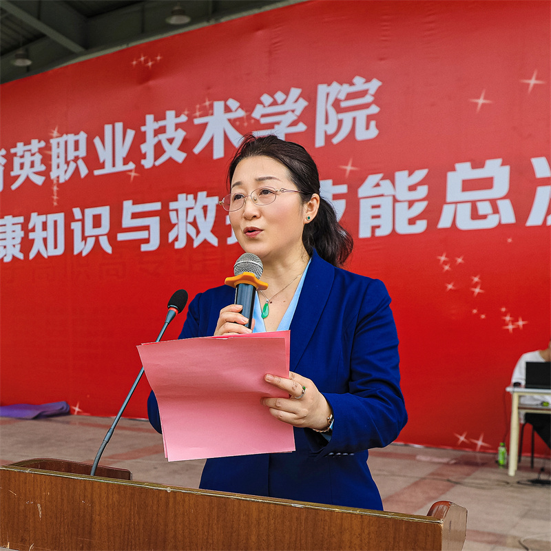 谢鑫在开幕式致辞。她说,生命重于泰山,生命教育在于让大家学会珍惜和热爱,是同学们身心健康发展的根基。作为一名大学生,敬畏生命,呵护生命,关注健康是应具备的基本素养。卫生健康知识和救护技能大赛,既是我校长期坚持开展健康教育成果的全面展示,也是唤起健康意识、防险急救意识、人道救援意识的教育活动。希望同学们能在参赛和观摩学习中不断提升卫生健康救护能力和水平,弘扬红十字“人道、博爱、奉献”精神,成为高素质复合型技术技能人才。