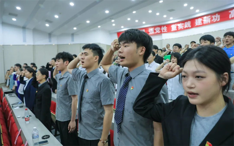 新发展的教职工党员和学生党员进行宣誓,党委委员王贤军领誓。