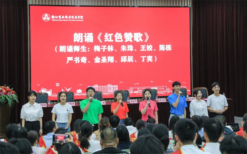 党委书记谢鑫以《锚定发展目标 传承红色基因 高质量党建推进高质量发展》为题发表讲话。她说,一年来,学校扎实开展主题教育,师生党员按照学校党建工作思路和要求,踏实工作、勤奋进取,党建与思政工作取得了进一步发展。学校组织建设进一步夯实,党建品牌进一步唱响,党建研究进一步深入,党建竞赛进一步突破,党建共建进一步发展。全校师生在教育教学、后勤服务、社会服务、疫情防控、服务亚运等方面做了大量卓越而务实的工作,我们走过的足迹坚定而自信。这种坚定源于全校各级党组织的担当作为,这种自信源于全体党员干部和全体育英人的务实奋进。在习近平总书记视察育英20周年之际,育英师生以实际行动交上育英答卷。