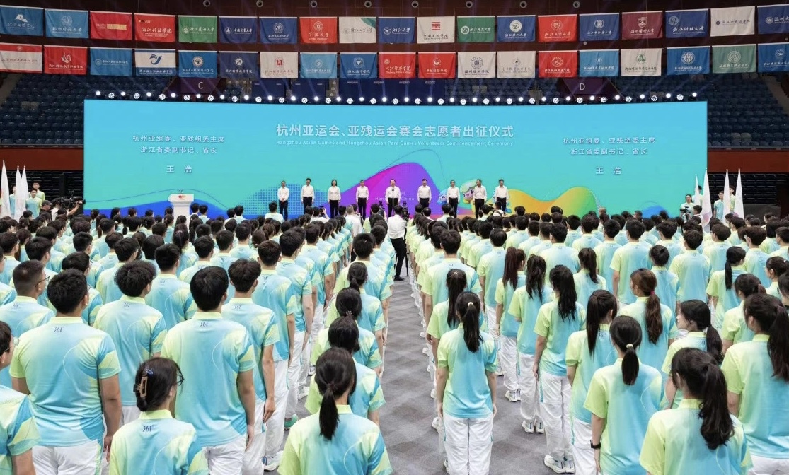 据悉,杭州亚运会、亚残运会赛会志愿者招募工作启动于2021年5月,经过全球招募、补充招募,共有31.7万人成功报名。亚组委通过线上报名、初选、面试、通用培训、场馆培训、岗位培训和服务保障测试赛,最终选拔出3.76万名志愿者,主要来自浙江46所高校。赛会志愿者队伍呈现专业性、代表性、广泛性、国际性。