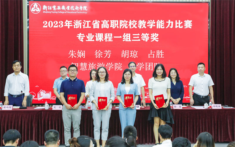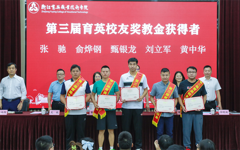 王敏宣读会议表彰文件。2023年度杭州市优秀教师等“二优秀一突出”典型、2023年浙江省高职院校教学能力比赛获奖团队、第十届“我最喜爱的老师”、第三届育英校友奖教金获奖教职工受到表彰。