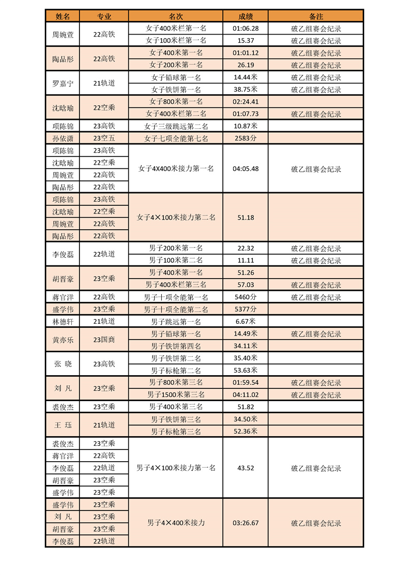本次比赛是我大学以来第一场比赛,很荣幸遇到了四年一届的大学生运动会。我参赛的项目是十项全能和男子4×100米、4×400米竞赛项目。十项全能是田径比赛项目中最苦、最累的项目,不到最后一刻,完全不知道谁是最后的胜者,拼的是技术、体能和顽强的意志品质。教练常说,十项全能是强者玩的项目,吃得苦中苦,方为人上人。我在十项全能赛场和接力赛场中刷新了自己的成绩,赛出了拼搏的精神。虽留下一些遗憾,但我相信还有很多机会等着我,我需要加倍努力,去实现一个又一个新的目标。训练是艰辛的,只有吃得了这些苦,才能在赛场上笑到最后。感谢教练一路的栽培和校领导一路的陪伴和关心,我是铠甲勇士,下一个赛场等着我去奔赴,下一个目标,等着我去实现。