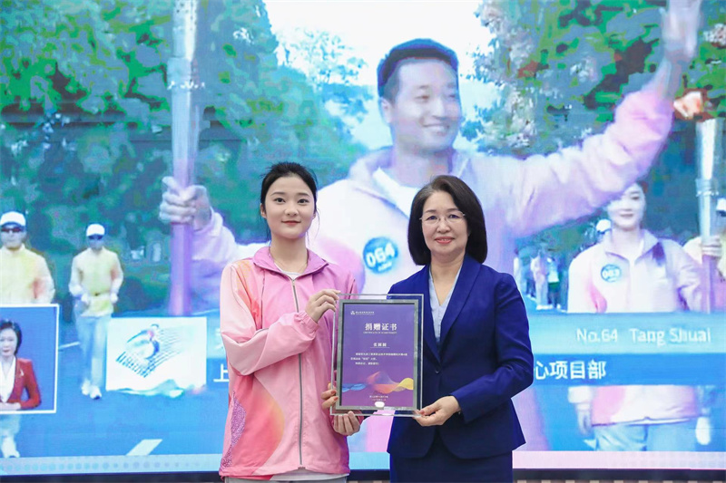 会上举行了火炬赠送仪式,杭州第4届亚残运会火炬手张圆圆向学校赠送亚残运会火炬,学校常务副校长黄爱平接收。杭州第19届亚运会火炬手陈冉向学校赠送亚运会火炬,校长丁金昌接收。
