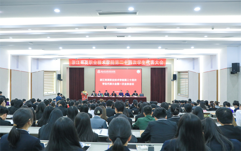 杭州职业技术学院执行主席曹奕哲代表杭州职业技术学院及兄弟院校学生会对我校学生代表大会的召开表示祝贺。希望未来两校加强沟通与联系,交流与合作,共同推进学生会工作的发展和进步。