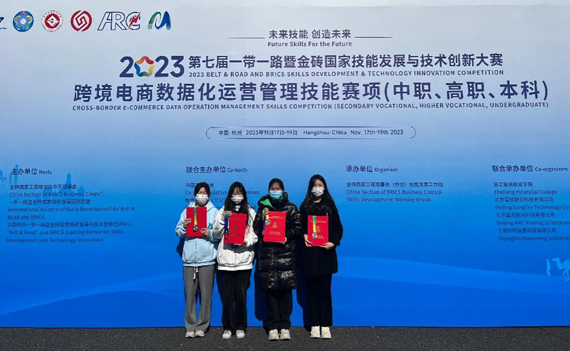 近日,2023一带一路暨金砖国家技能发展与技术创新大赛跨境电商数据化运营管理技能赛项全国总决赛在浙江金融职业学院举行。我校数字商贸学院跨境电商专业学生王婧如、史柳佳、郭辰玥、陈若彤团队获二等奖。指导教师姜雯和罗文婷获优秀指导教师,学校获优秀组织奖。