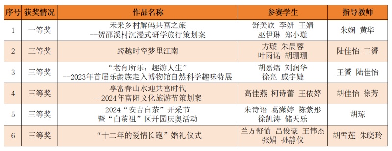 获奖作品选题聚焦“乡村振兴、文旅融合、绿色经济、共同富裕、未来产业”等热点,作品类别涵盖策划案、婚庆主持、短视频等,彰显我校学子优秀的专业素质和创新能力,践行我校“以赛促教、以赛促学”的培养理念,充分体现“顽强拼搏”的育英精神。