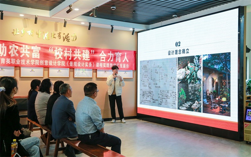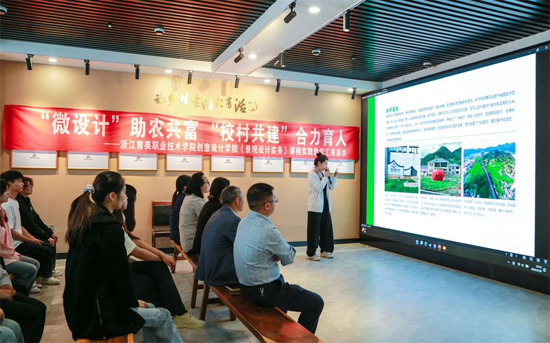 建德市杨村桥镇长宁村党总支书记、主任朱宁斌对同学们的创意设计成果表示肯定。他表示,自2020年结下互助共建的友谊,到今年的“结亲”,长宁村与育英学院的关系亲上加亲。学校将课程融入社会服务,同学们把所学知识带到田间地头,把智慧融入实践,为乡村振兴贡献力量,让长宁村焕发了新的活力。