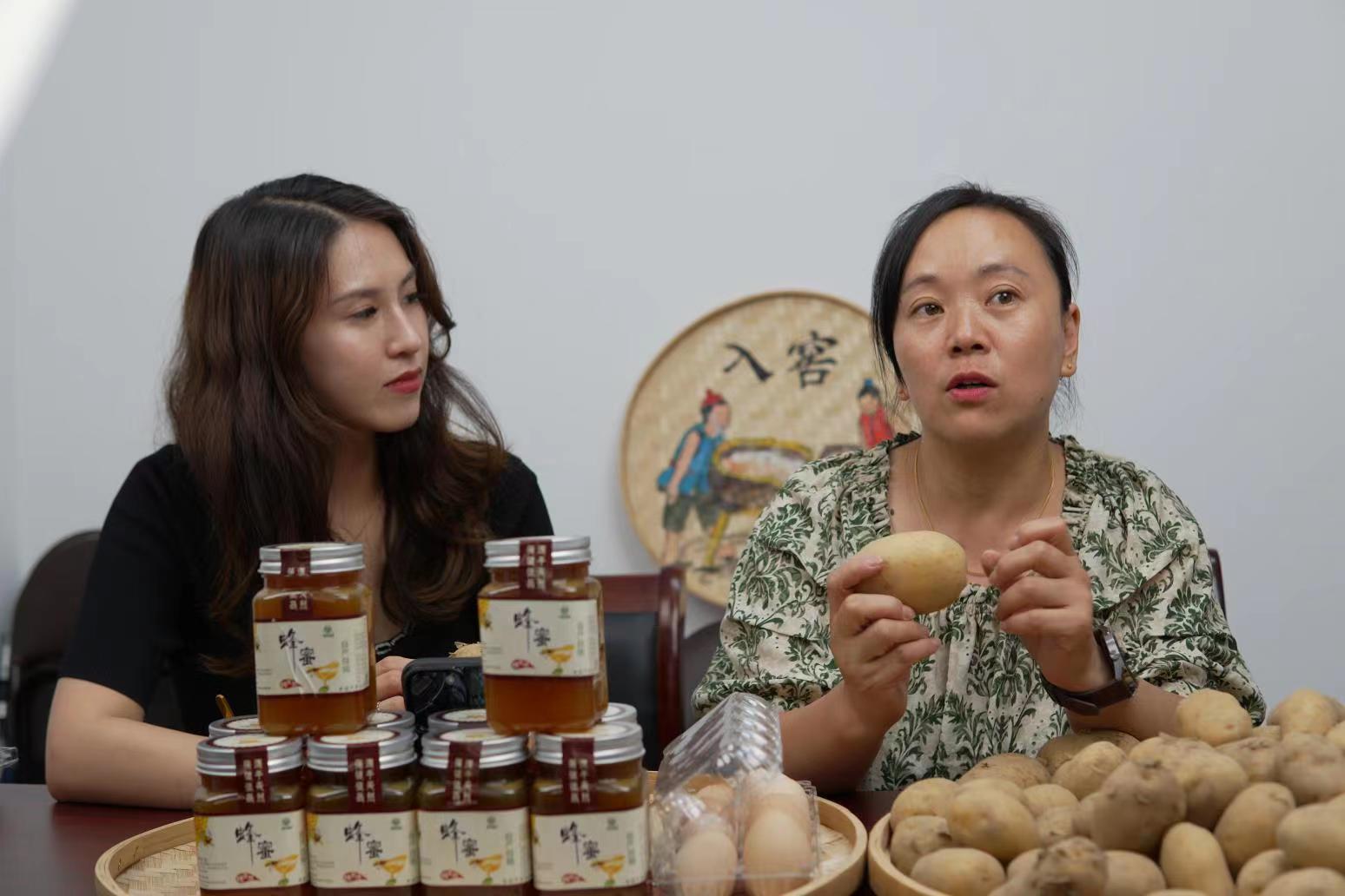 本次党日活动第二个部分是我院师生在村里开展农产品直播带货活动。这场直播于下午三点准时在淘宝平台开播,张爱娟书记也亲自上场直播带货介绍自己村的优质农产品。短短一小时直播,观看人数达到3600多人,新增粉丝关注400余人,成交254单,销售金额18000余元。,洞坑口村的土鸡、土鸡蛋、富硒土豆、天然蜂蜜等优质农产品获得了一致的好评。