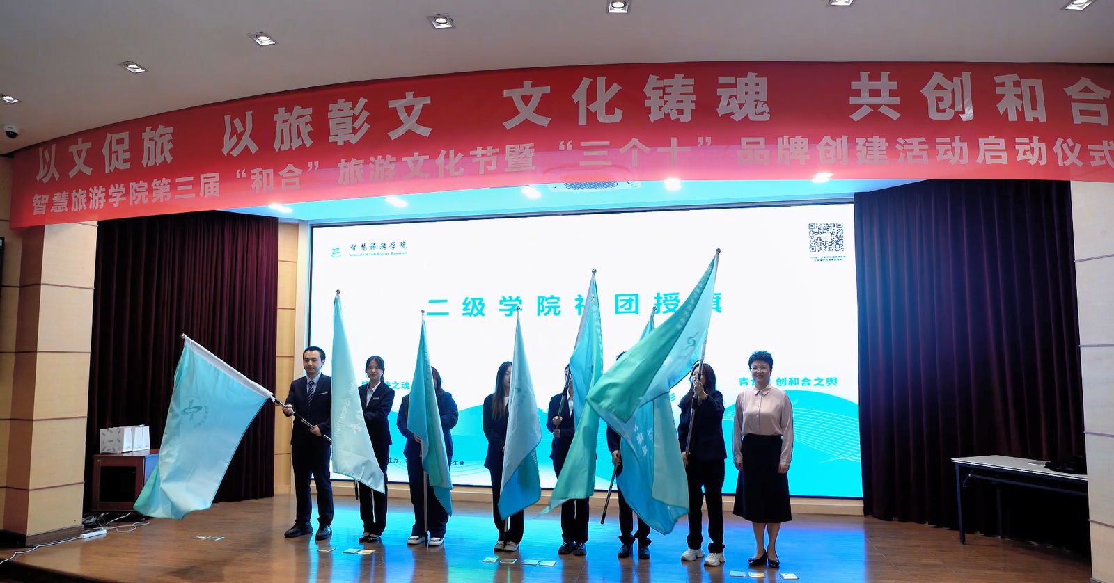 启动仪式上,还举行了“学生职业素养实践基地”授牌、学生文旅竞赛导师聘任、特色社团授旗、学生省级赛事获奖团队颁奖等。