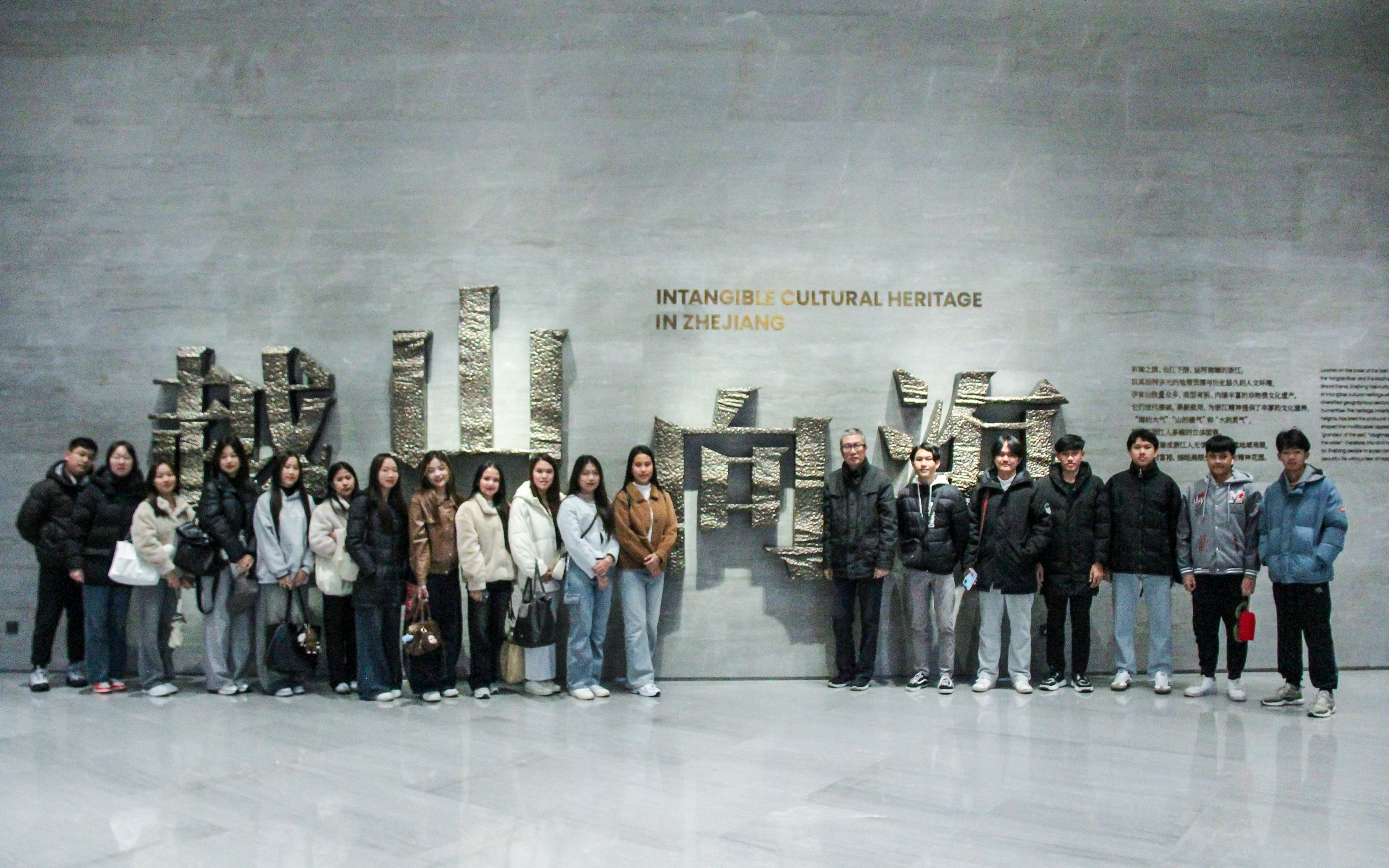 12月10日,24级老挝留学生与酒店管理专业的学生并肩,共赴浙江省非遗博物馆,探索非遗之美。