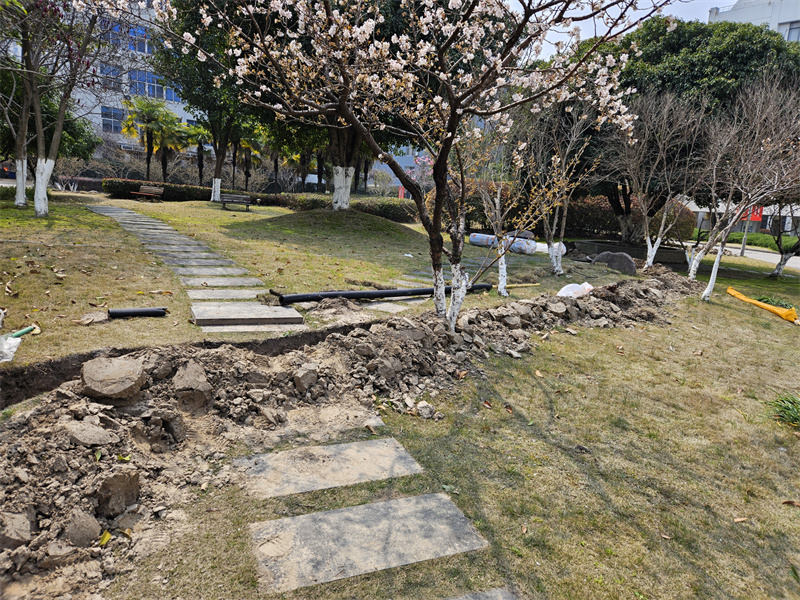 3月初,为了配合校园绿化景观提升工程的开展,开发公司综合维修部完成了教学区草坪自动灌溉喷淋系统的预埋安装并已投入使用,物业服务部完成新种植茶花30棵、移栽各类树木100余棵。
