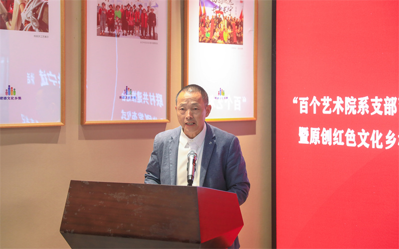 特邀嘉宾、国家级“非遗”杭州小热昏代表性传承人周志华视频讲话,对红色文化乡村曲艺剧发布表示祝贺,分享了非遗艺术的魅力及它在乡村振兴中的独特作用。
