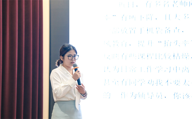 专家评委应笑妮进行点评。她对参赛辅导员的精彩表现给予充分肯定。她说,学生工作的本质是帮助学生成长和发展。辅导员要有职业敏感性,在案例分析中要用理论分析能力抓到问题关键;要丰富自己的语言体系,在谈心谈话中聚焦学生关注的点并予以回应,真正用心帮助学生健康成长。