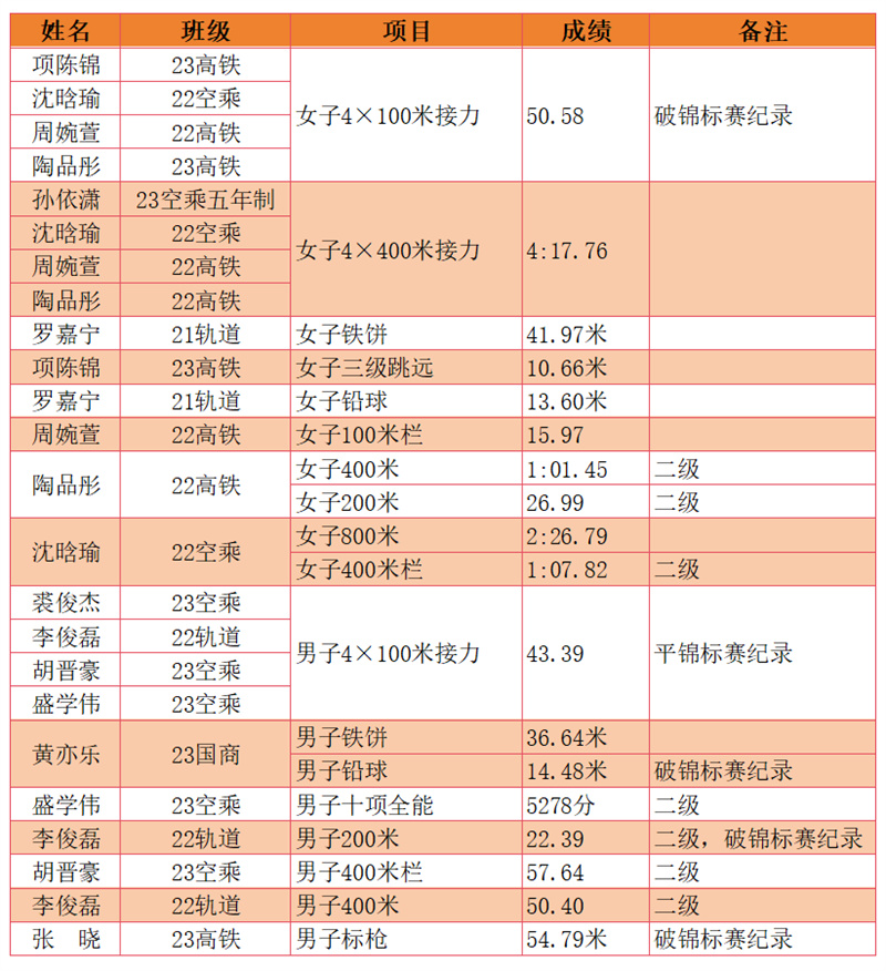 - 2023年10月24日-29日,浙江省第十六届大学生运动会田径比赛,15金7银6铜,破17项赛会纪录,总团第一。