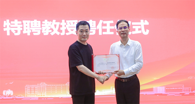 聘任仪式前,校长丁金昌,党委书记、副校长谢鑫,教务部主任罗妮娜,数字商贸学院院长欧阳驹,创意设计学院院长宋连凯等与方剑就教育合作、人才培养等方面进行座谈交流。