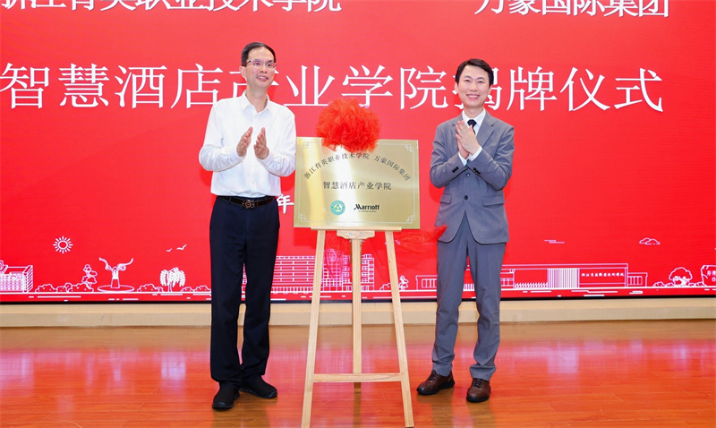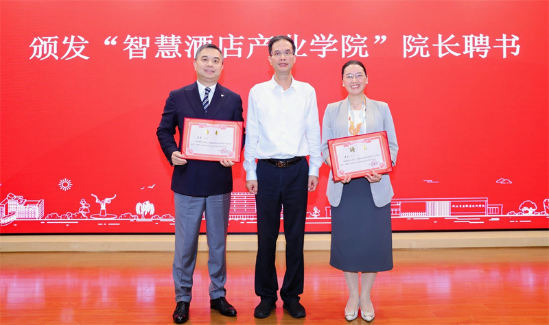 丁金昌、周艳军共同为“智慧酒店产业学院”揭牌。