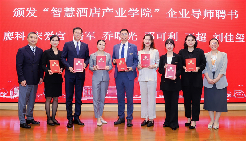 李罡、黄华共同为“智慧酒店产业学院”导师团颁发聘书。