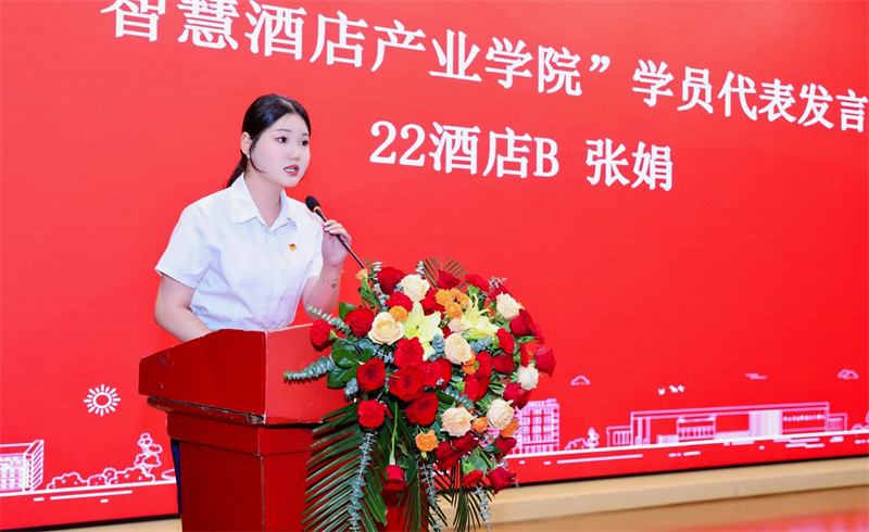 “智慧酒店产业学院”学员代表、22酒店B班学生张娟发言。