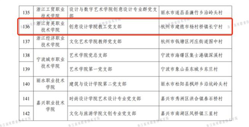 近日,中共浙江省委教育工委办公室公布了《关于实施高校“百个艺术院系支部联村共建”推进乡村文化建设的通知》,我校创意设计学院教工党支部与杭州市建德市杨村桥镇长宁村的联村共建项目入选。