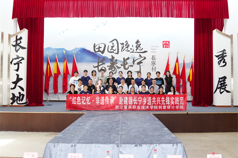建德市杨村桥镇长宁村自然条件优厚,素有“长寿长宁”之称,同时也是“千鹤妇女精神”的发祥地,自然资源和红色村史是长宁村最大的优势和财富。多年来,创意设计学院与长宁村建立深厚的合作基础,把设计课程开到长宁村的田间地头、把青春火种撒向乡村共富一线、把红色基因搬进“互助故事馆”、把教师培养为“兴村共富”指导员,助力长宁村获批浙江省首批“红色根脉”强基示范村。