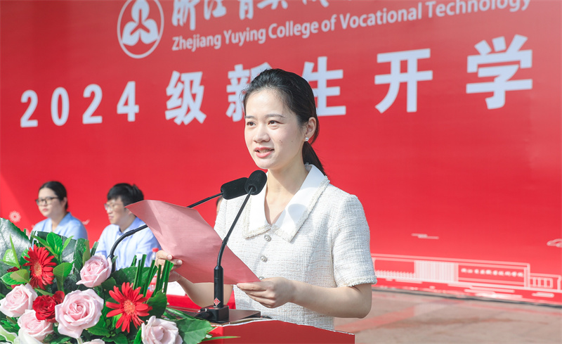 智慧旅游学院会展策划与管理专业教师,浙江省青年教师教学竞赛二等奖获得者、杭州市教育系统优秀教师、学校“我最喜爱的教师”陆佳怡发言。她鼓励同学们勇敢地迈出探索的步伐,主动去寻找、去学习、去发现、去质疑、去创新。她建议同学们明确目标,学会时间管理,保持健康的生活方式,努力让每一天都充满意义。