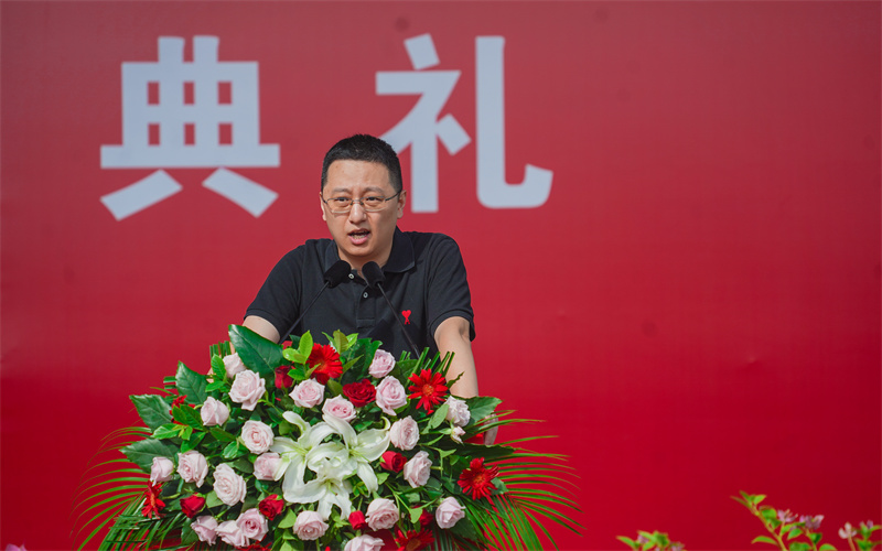 丁金昌致辞。他代表学校对全体新生表示热烈欢迎,向为培育同学们健康成长成才默默奉献、辛勤付出的家长、老师表示衷心感谢。
