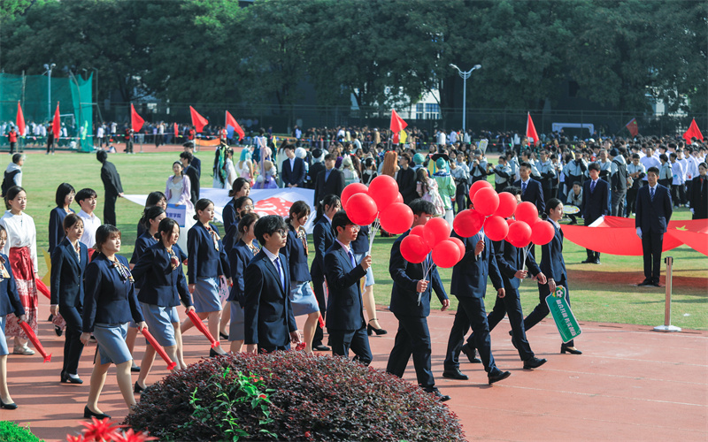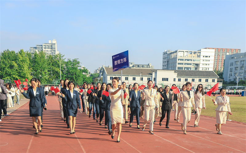 开幕式上,国旗、校旗、会旗护旗队,各学院、部师生代表队,行政教工代表队排列着整齐的方阵,迈着矫健的步伐,依次通过主席台。各方阵带着精心准备的节目,在主席台前一展才艺与创意。