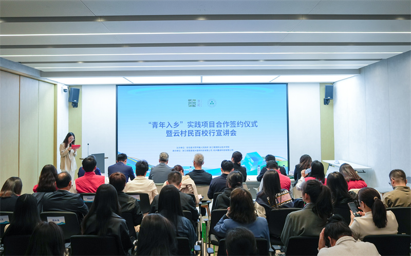 许进京致辞。他介绍了安吉天荒坪镇基本情况、以余村为核心的“大余村”共富先行区建设所取得的成绩。近几年来,“大余村”已吸引60多个全球合伙人项目落地,1000多名青年常态化驻地办公,涌现出70余处新场景、新业态,正在开辟乡村振兴新局面。希望校地双方共同探索,有力推动青年入乡实践项目,实现更长久、更频繁、更深层次的合作,吸引更多青年学子入乡,共同谱写“看得见文化、留得住乡愁、带得动致富”的未来乡村美好图景。