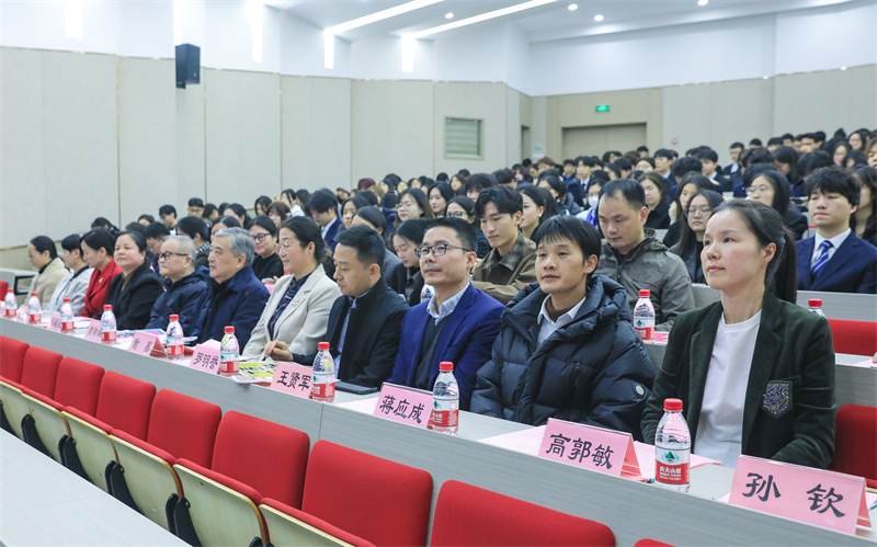 浙江省中华职业教育社副主任、杭州市第十一届政协副主席、杭州市中华职教社主任周智林,杭州市十三届人大常委会党组副书记、副主任、杭州市劳模工匠协会会长郑荣胜,浙江省中华职业教育社秘书长屈晓燕,杭州市委统战部副部长罗明誉,杭州市劳模工匠协会副会长郑桂岚,杭州市中华职业教育社秘书长张灵仙,我校党委书记、副校长谢鑫,党委委员、党群部主任王贤军,党群部副主任张荣,浙江省中华职业教育社、杭州市中华职业教育社、杭州市劳模工匠协会有关同志,学校各学院党总支、直属党支部副书记,师生代表等近350人参加本次报告会。团委书记孙钦主持。
