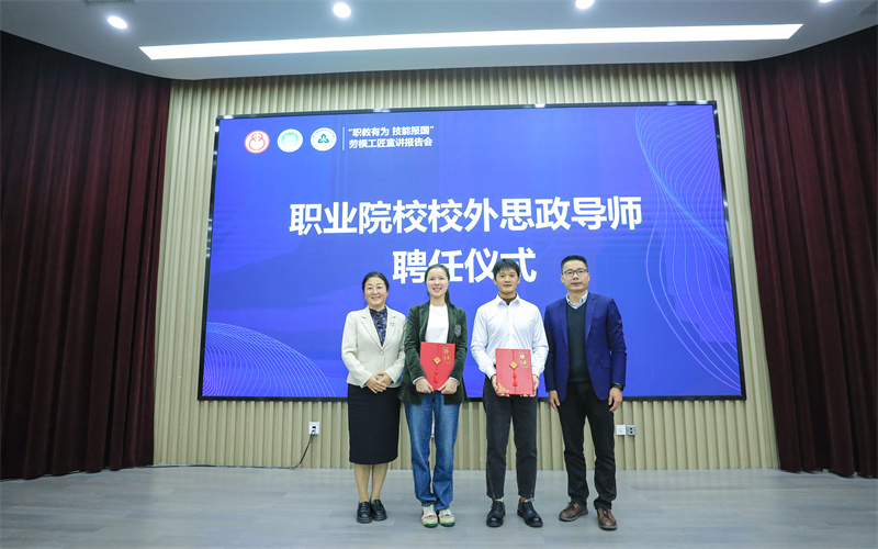 谢鑫、王贤军为高郭敏、蒋应成颁发职业院校校外思政导师聘书