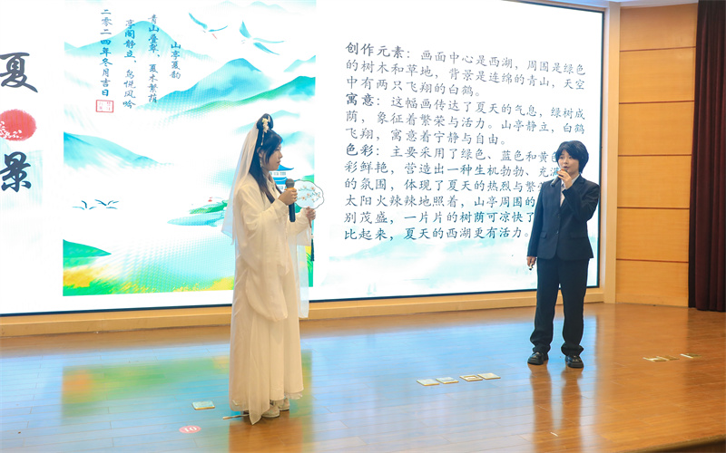 赛后,杭州电子科技大学副教授、硕士生导师、中科院博士李仕代表评委进行了点评。他对同学们的表现予以充分肯定,指出12个参赛作品彰显了同学们的高水准,尤其是AI绘画作品,凸显出育英同学在接受和应用新事物方面的优势。他由育英的课程建设联想到自身专业培养方案的革新,并对简历介绍环节中同学们熟练运用AI工具表示赞赏。他鼓励同学们持续强化数字技术学习,以进一步提升综合素质,在数字领域不断取得进步。