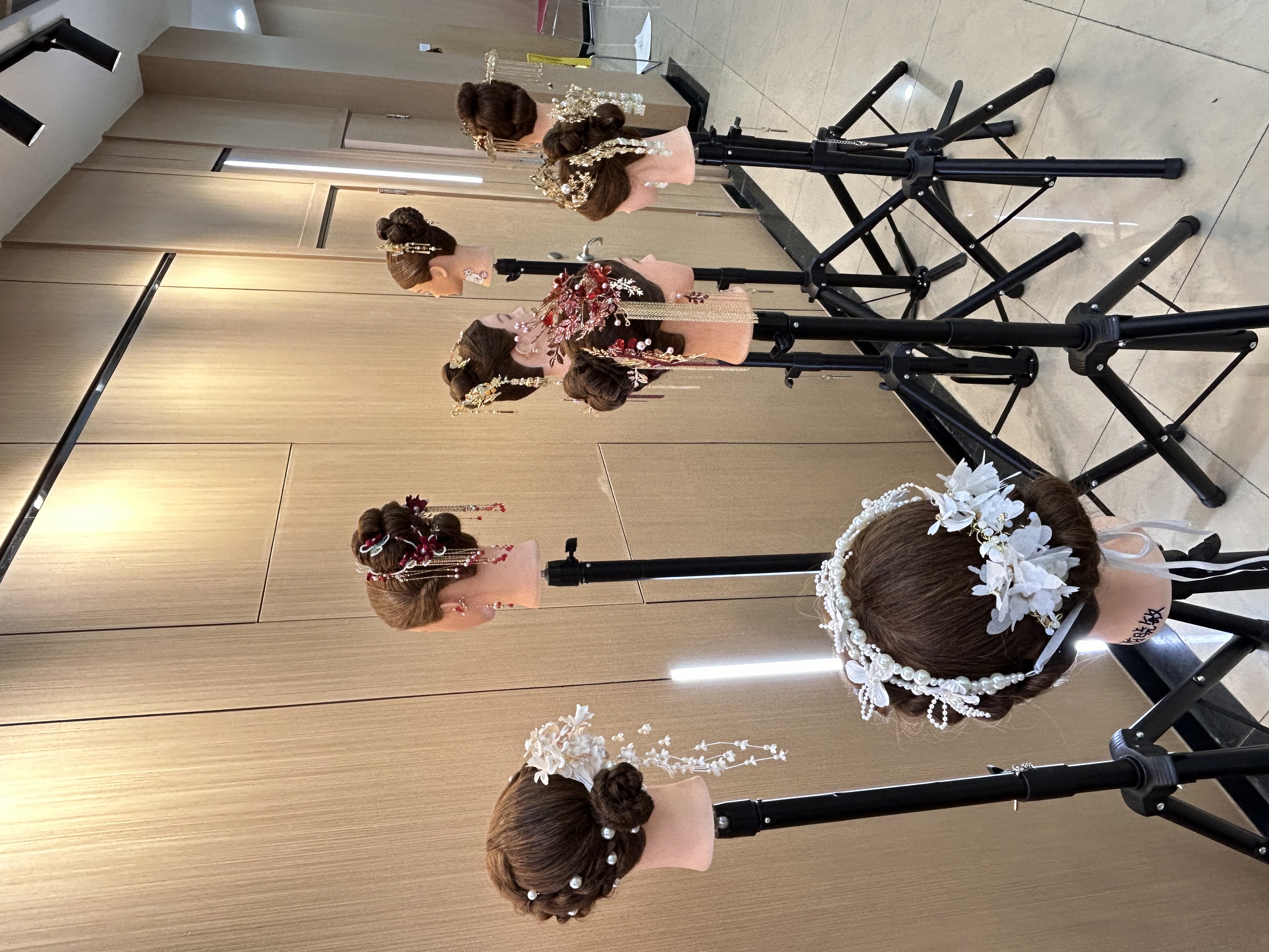 12月25日,设计学院24形象A班的《发型设计》课程结课作品在2号楼5楼大厅展出。此次展览为新娘主题发型设计造型作品展,学生们展出的作品风格各异,特别是新娘白纱造型和新娘秀禾造型,让参观者眼前一亮,也能感受到学生们对发型设计的热情和专注。