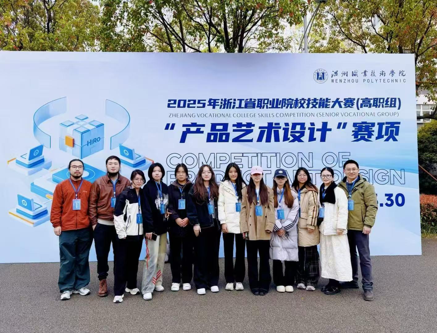 2025 年 3 月 29 日,浙江省职业院校技能大赛(高职组)“产品艺术设计” 赛项落下帷幕。我校产品艺术设计专业师生团队实力出征,吴良勇、李吉、范志、李晓4位教师携手8名学生,在赛场上展现专业风采,经过激烈角逐,取得优异成绩,为学校再添荣誉!
