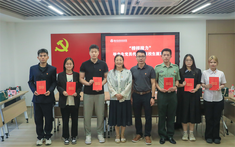 民航交通学院22空乘C班金日成,数字技术学院22创意班郑滢,数智商贸学院22市场营销班胡思雨,智慧旅游学院22会展B班潘昱妃,创意设计学院22广告B班彭稷,民航交通学院19空中乘务G班吴逸飞等应届和往届毕业生党员围绕目标设定、学习规划、素养提升、心理调适、感恩意识等与学弟、学妹们分享了专升本和研究生考试等方面的经验和感悟。