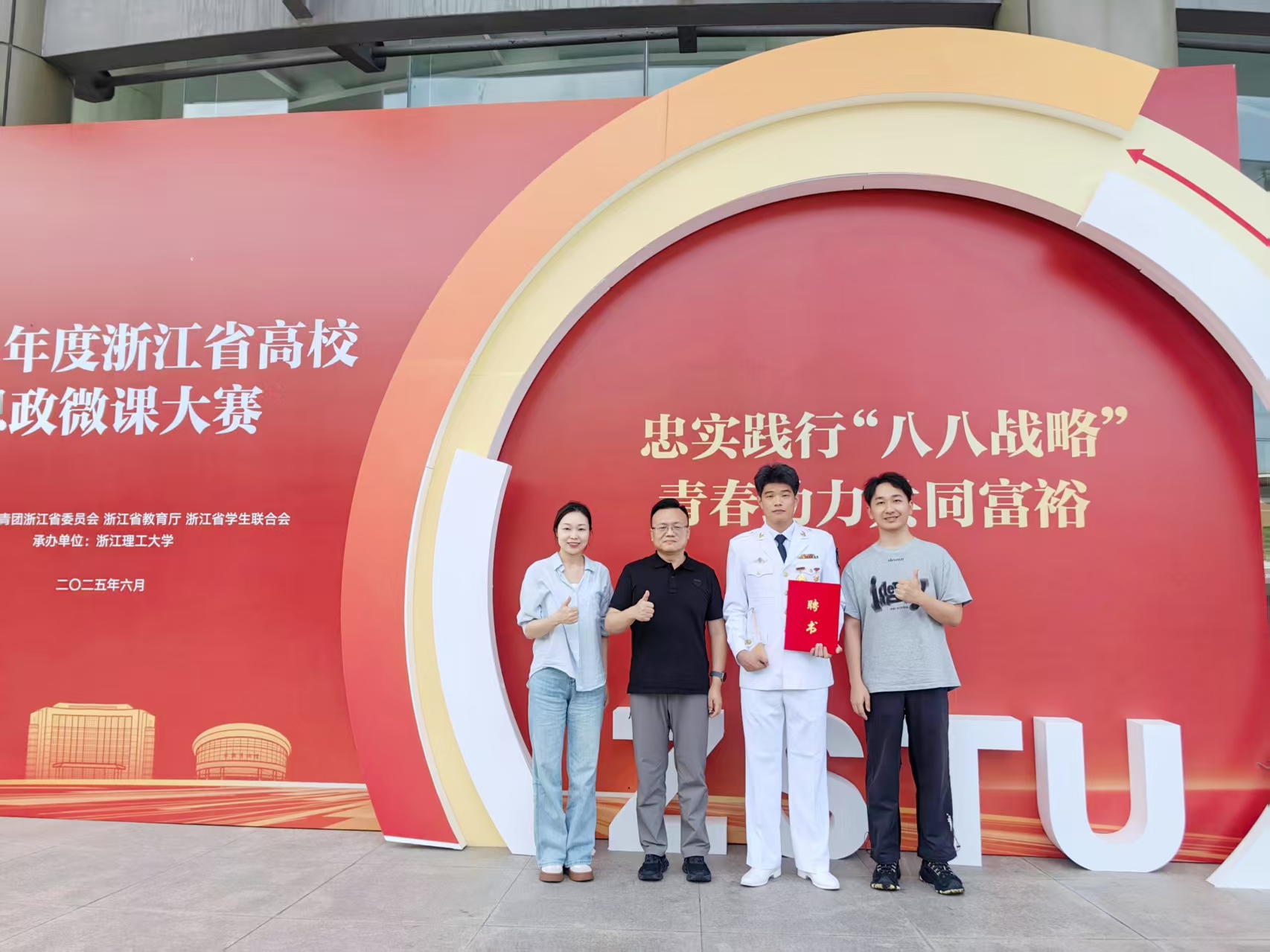 近日,2025年度浙江省高校思政微课大赛决赛结果揭晓。我校选送作品获学生组特等奖1项,教师组一等奖1项、二等奖1项。郑俊豪作品《017号的青春答卷》获学生组特等奖(第一名),指导老师王姣、章文龙,是我校参加该赛事以来获得的最高奖项。胡恺睿作品《一面铜锣传薪火,青春匠心颂新声》获教师组一等奖,秦云作品《烈火芳华:浙里红梅的青春之歌》获教师组二等奖。
