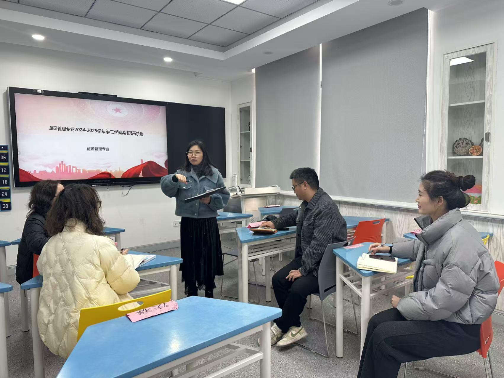 2025年2月15日下午,旅游管理专业全体教师齐聚一堂,深入学习丁校长在2024-2025学年第二学期工作会议上的重要讲话精神。会议围绕丁校长提出的高等职业教育的“四新”和“五金”理念展开讨论,旨在将丁校长的精神融入旅游管理专业的教学与育人工作中,以推动专业建设和人才培养再上新台阶。
