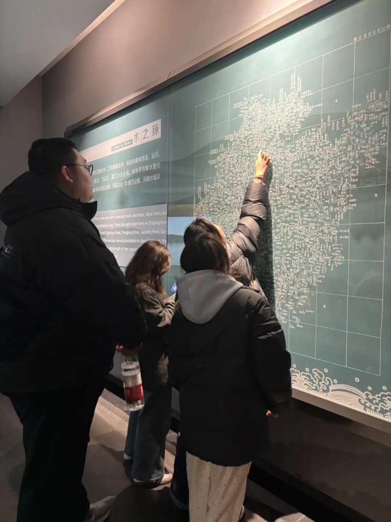 步入展馆,大型铜浮雕壁画呈现大禹 “三过家门而不入” 的治水场景,借助声光场景展,成员们 “穿越” 回远古,见证大禹 “疏堵结合” 治理洪水。这不仅让大家感受到先民的抗争勇气,也引发了对当代水资源危机应对方法的思考。